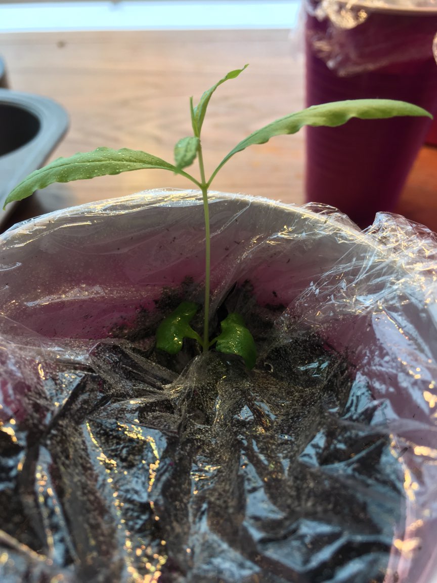 Like I said before, the moisture from being covered with plastic, and having a light shine right over the cherry sprout, is helping it grow faster and stay alive.